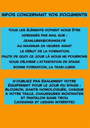 A bientôt pour le stage et n'oubliez pas de vous munir d'un blouson, de gants et d'un casque